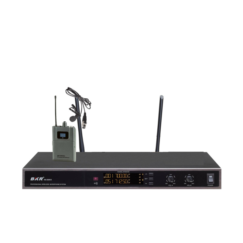 Микрофонная радиосистема с двумя петличными микрофонами.