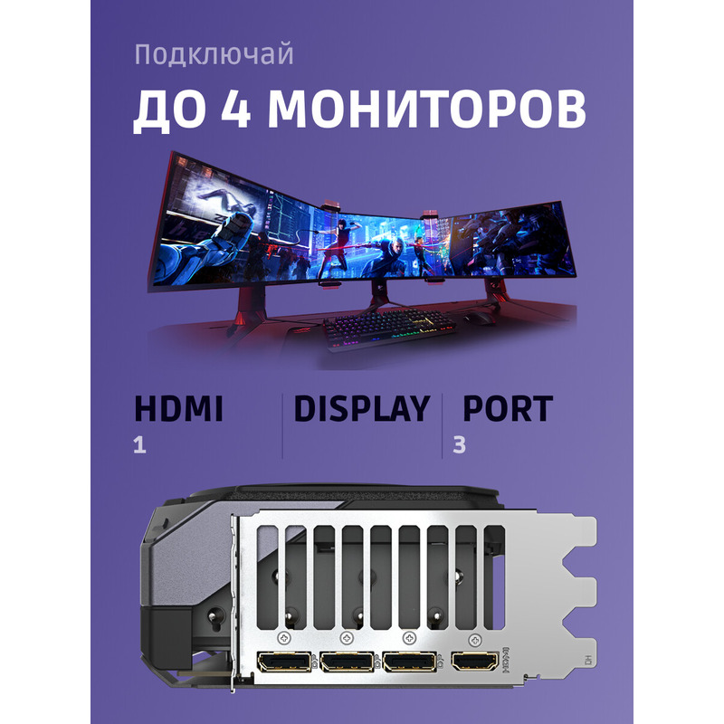 Интерфейс PCI-E 5.0 обеспечивает высокую скорость передачи данных между графической картой и материнской платой, что важно для современных игр и приложений. Максимальное разрешение 7680 x 4320 позволяет наслаждаться играми и мультимедийным контентом в разрешении 8K, обеспечивая невероятную детализацию и качество изображения. Поддержка до 4 дисплеев позволяет создавать многоэкранные настройки, что удобно для работы с несколькими приложениями одновременно или для игр на нескольких мониторах.