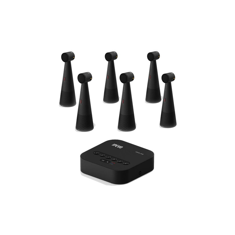 Беспроводная аудиосистема VOCAL HUB обеспечивает бесперебойное сопряжение 6 вокальных партий IPEVO, каждая из которых обеспечивает 40-часовое время автономной работы и усовершенствованное 2-полосное шумоподавление с помощью искусственного интеллекта. Совместимая с ноутбуками и мобильными устройствами, она легко интегрируется с оборудованием сторонних производителей, обеспечивая повышенную гибкость при проведении любых совещаний и обустройства переговорной.