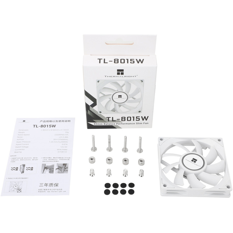 Благодаря своим размерам (80x80x15 мм), Thermalright TL-8015W легко устанавливается в тесные пространства, где стандартные вентиляторы не помещаются. Это делает его отличным выбором для компактных сборок, мини-ПК или серверов, где важно эффективное охлаждение без ущерба для габаритов.
